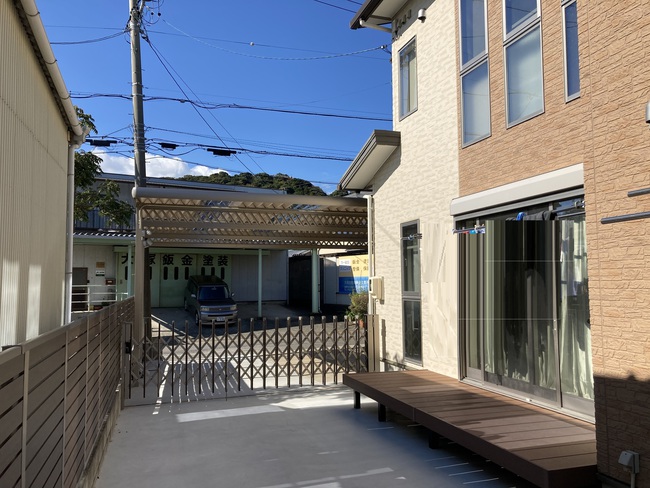 敷地内にある電柱を避ける形で切欠き加工を施した間口11mの