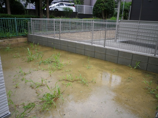お庭の水はけ、雑草対策に人工芝を施工させていただきました。