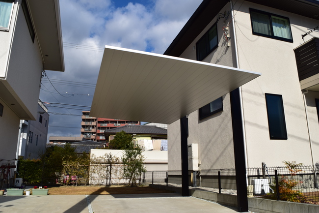 屋根そのものを構造材とすることで中骨レスなまったく新しいカーポートです。