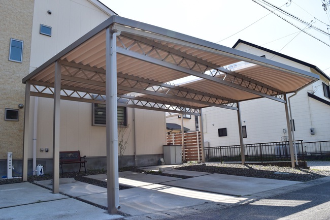 敷地に合わせて、五角形のセッパンカーポートを設置させていただきました。