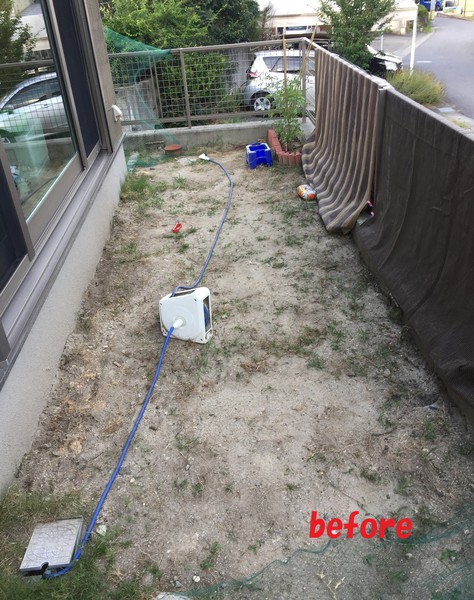 土のままで雑草にお困りだったお庭に 天然芝(高麗芝)を張り